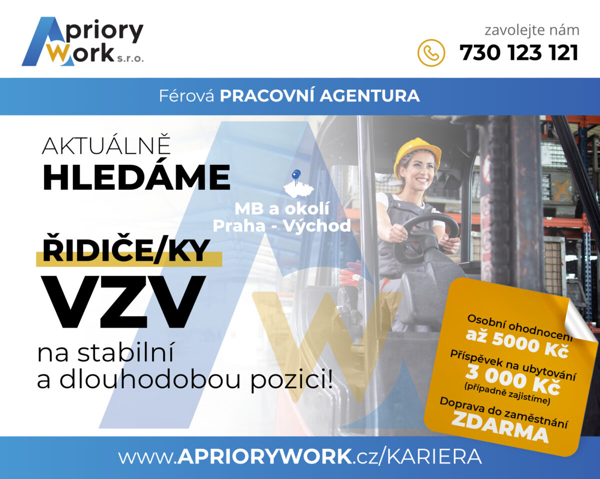 Hledáme kolegy na pozici Řidič/ka VZV. Pracovali byste v lokalitě: Nymburk a nebo Mladá Boleslav. Oceníme dochvilnost, zodpovědnost a loajalitu.